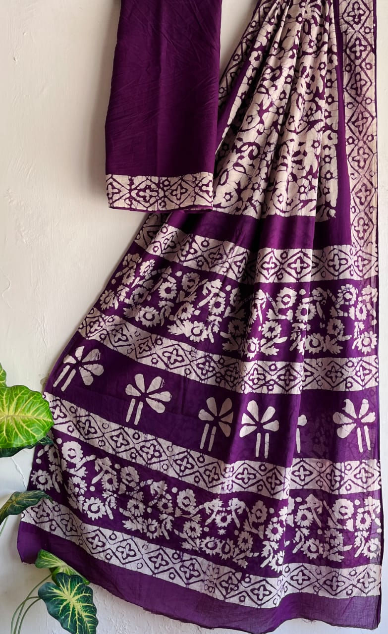 Cotton MulMul Handblock Saree